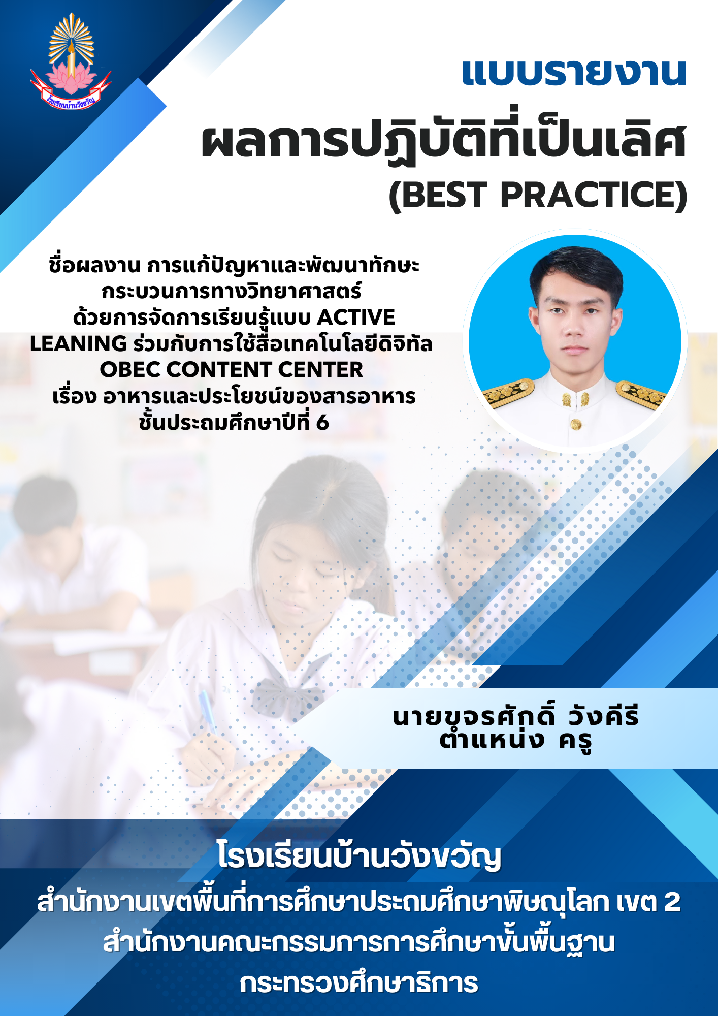 เรื่อง เรื่อง การแก้ไขปัญหาและพัฒนาทักษะกระบวนการทางวิทยาศาสตร์ ด้วยการจัดการเรียนรู้แบบ Active leaning ร่วมกับการใช้สื่อเทคโนโลยีดิจิทัล OBEC Content Center เรื่อง อาหารและประโยชน์ของสารอาหาร ของนักเรียนชั้นประถมศึกษาปีที่ 6
