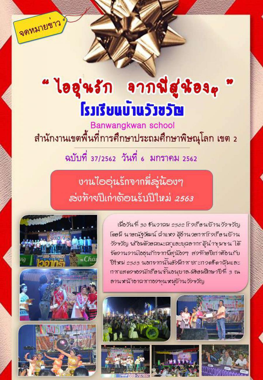 เมื่อวันที่ 30 ธันวาคม 2562 โรงเรียนบ้านวังขวัญ โดยมี นายณัฐวัฒน์ คำแหง ผู้อำนวยการโรงเรียนบ้านวังขวัญ พร้อมด้วยคณะครูและบุคลากรผู้นำชุมชน ได้จัดงานงานไออุ่นรักจากพี่สู่น้องๆ ส่งท้ายปีเก่าต้อนรับปีใหม่ 2563 นอกจากนั้นยังมีการประกวดธิดาคุ้มและการแสดงของนักเรียนชั้นอนุบาล-มัธยมศึกษาปีที่ 3 ณ ลานหน้าอาคารกองทุนหมู่บ้านวังขวัญ